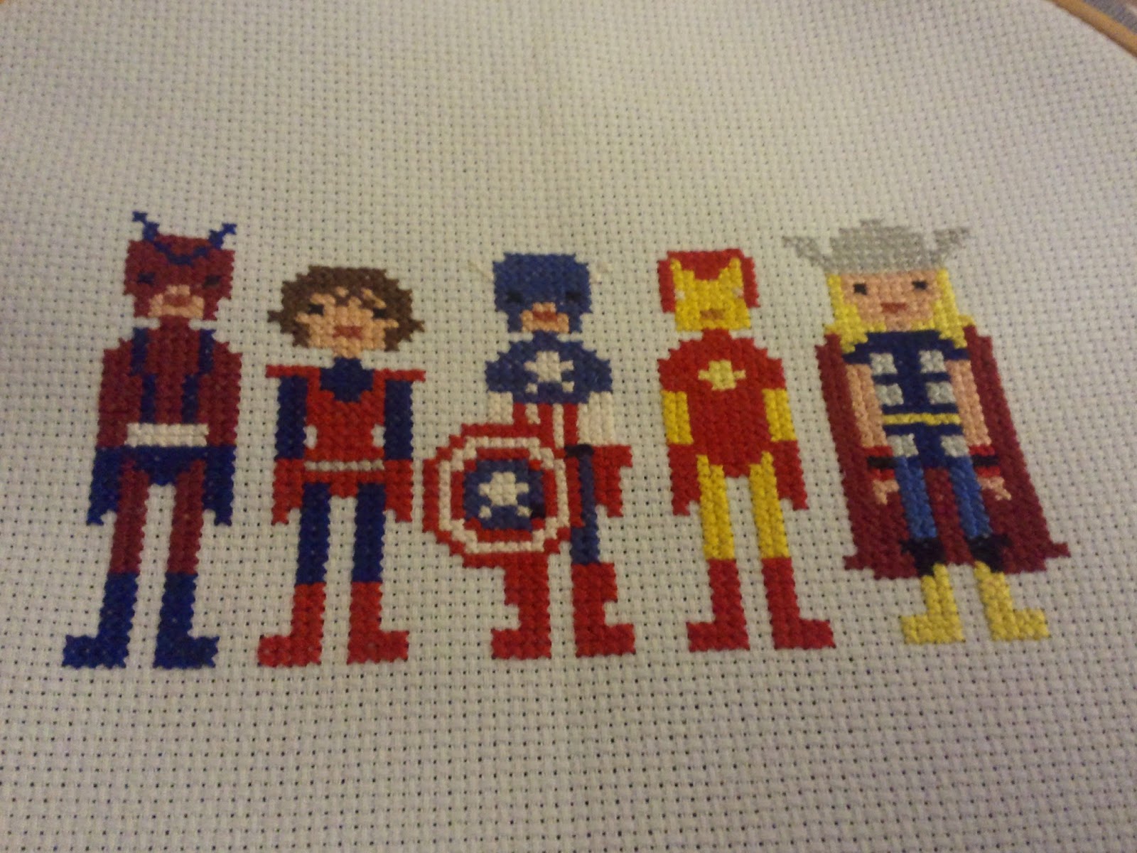 I (almost) finished Joe's birthday present in time. I still need to add the words 'Avengers Assemble' to the bottom, and Captain America's 'A' and then it'll be finished.